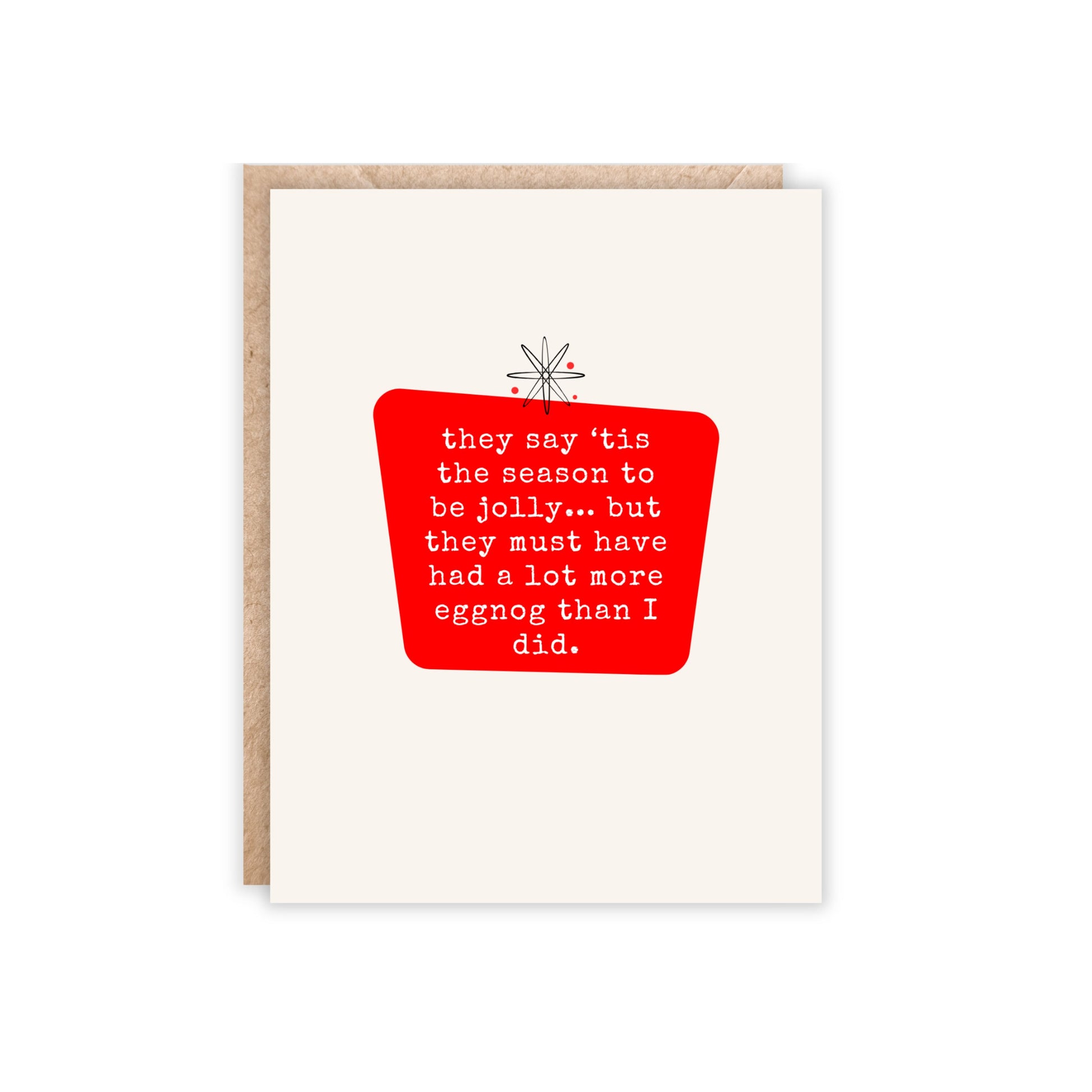 Bring a dash of holiday humor to someone’s mailbox with this card that understands the “jolly” struggle! Designed for those who could use a little laugh—and maybe a strong cup of holiday cheer—this card captures the reality of December with a wink. Whether you’re sending it to a friend who feels the holiday stress or a family member who knows the eggnog helps, this card is here to spread laughter and a reminder that a little extra eggnog never hurts!